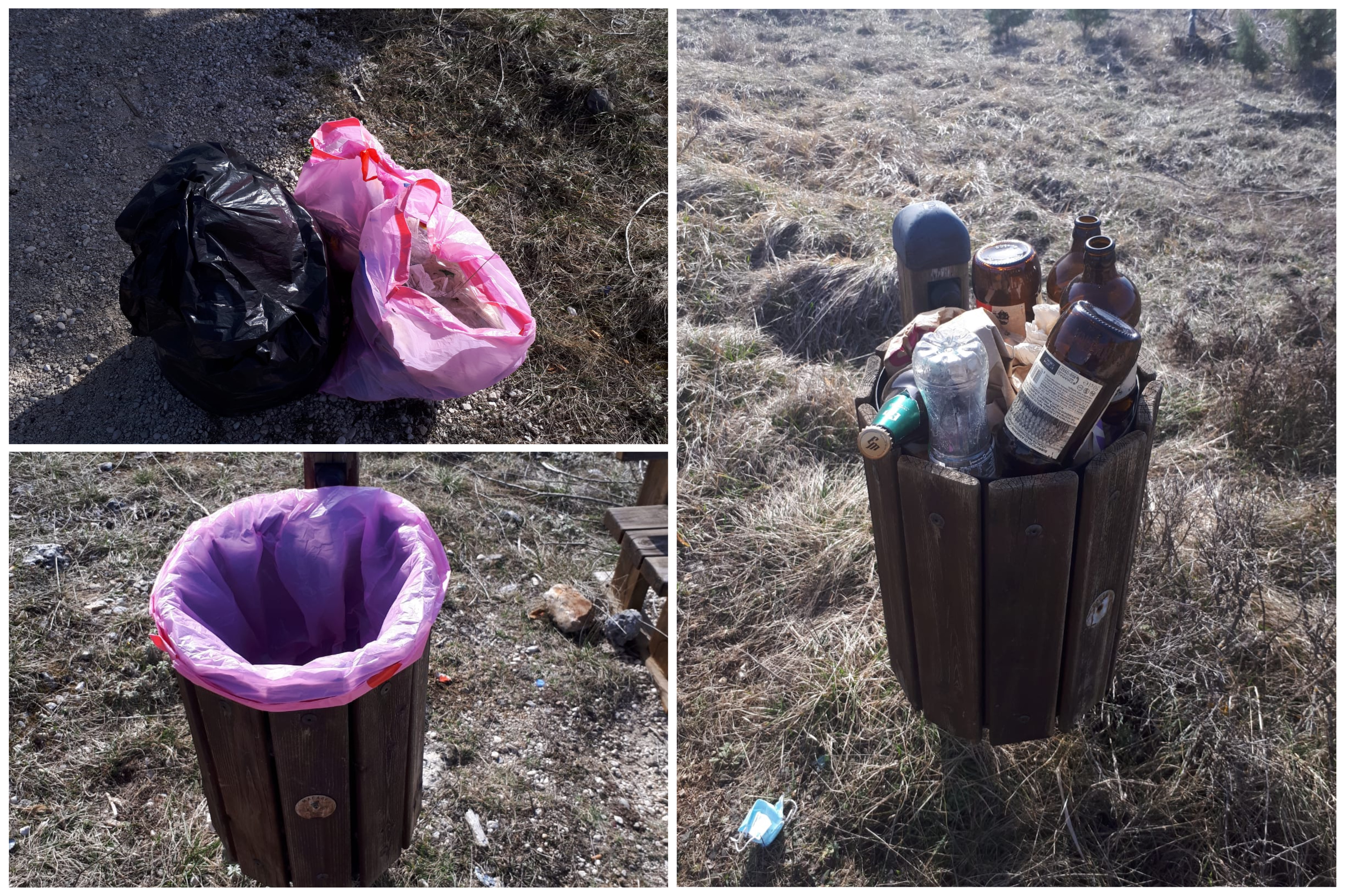 Cestini pieni, bottiglie di vetro, fazzoletti, carta, oggetti in plastica dopo mesi di segnalazioni, immondizia di ogni genere abbandonata su Monte Salviano, tra l’altro area naturale protetta.
