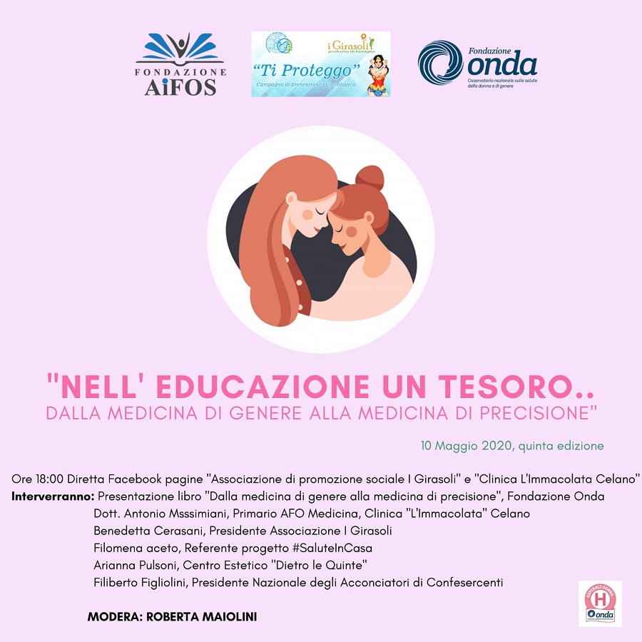 «La diretta Facebook è la trasformazione del convegno che avremmo dovuto tenere in piazza. “Nell’educazione un tesoro” il titolo dell’incontro che porrà il focus sulla medicina di genere sino alla medicina di precisione».