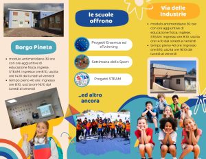 Infine, il 14 dicembre, l’Open Day si svolgerà presso la Scuola Primaria “Borgo Pineta”. Anche qui alunni e maestre sono pronti ad accogliere genitori e bambini per mostrare la struttura e i bellissimi laboratori preparati per l’occasione.