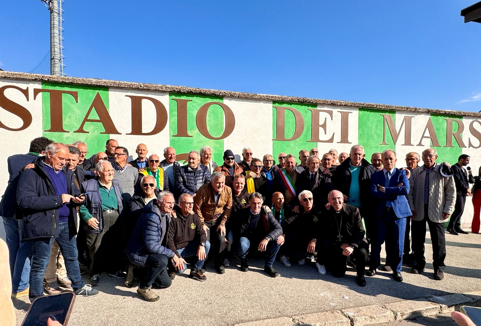 Nelle previsioni iniziali, sarebbe dovuta essere una grande festa per la città ma, alla fine, è stata molto di più: una domenica di novembre di sole e di emozioni che rimarrà scolpita indelebilmente nella storia dello sport cittadino e negli annali della comunità avezzanese e marsicana. Stamattina, di fronte all’ingresso dello stadio comunale, a salutare la scritta gigante che riporta il nome e il cognome della gloria dell’Avezzano Calcio Sandro Cimarra, è stato lo scrociante applauso di tantissime persone: familiari, amministratori, sportivi, sostenitori, amici di sempre, storici compagni di squadra e tifosi della Curva Nord. “E’ stata una domenica dal sapore diverso, – l’ha definita il sindaco, Giovanni Di Pangrazio – che ha segnato la celebrazione di un momento significativo per Avezzano e per lo sport: oggi, ufficialmente e con una cerimonia pubblica, – ha continuato il primo cittadino, dando il benvenuto a tutti i presenti – abbiamo intitolato il nostro stadio a Sandro Cimarra, un uomo che ha impersonato valori profondi e autentici. Cimarra rappresenta un’epoca in cui ognuno faceva la propria parte. Sandro ha incarnato il legame profondo con questa città, un rapporto viscerale con la “sua” Avezzano, che oggi celebriamo intitolandogli questo stadio e impegnandoci a farne una struttura all’altezza della sua memoria e dei valori che ha trasmesso. Il Comune è pronto a fare la sua parte. La sua filosofia di vita era che l’unione fa sempre la forza: la collaborazione e la condivisione sono le mosse in più che portano lontano un territorio intero. Un ringraziamento speciale va anche al nostro assessore allo sport che, assieme ai consiglieri comunali, è riuscito nell’impresa, seguendo l’iter dalla delibera al disco verde della Prefettura”. Sandro Cimarra è stato il capitano dei biancoverdi negli anni ‘70 e ’80, protagonista di due storiche promozioni della squadra, con oltre 300 partite alle spalle ed ha indossato la fascia da capitano con orgoglio, correttezza e con un coraggio che tutti ricordano. A riannodare, stamattina, il filo del lungo viaggio dell’intitolazione dello stadio, partito circa un anno fa, ad agosto 2023, con la raccolta firme “dal basso”, dal cuore della città grazie all’intraprendenza dell’Associazione culturale Piazza Cavour e al suo essere una spalla di impegno civile intramontabile, con Franco Casmirri presidente, sono stati l’assessore allo sport Pierluigi Di Stefano e il consigliere comunale Lucio Mercogliano, amico di Sandro. “Cimarra era un giocatore dai mille talenti e dalle mille qualità. È stato a tutti gli effetti il simbolo del calcio marsicano. – hanno detto i due amministratori – E sullo Stadio, ci impegneremo ancora di più, per far sì che torni ad essere il simbolo primario sportivo di questa nostra meravigliosa città”. Presenti, tra il pubblico di questa domenica carica di rispetto, calore umano e legami profondi, anche il consigliere regionale Massimo Verrecchia, i consiglieri comunale Concetta Balsorio e Maurizio Seritti, il parroco della Chiesa di San Giovanni, Don Franco Tallarico, il giornalista Rai, Antonio Monaco, i giornalisti Ezio Fosca, Eliseo Palmieri, Plinio Olivotto Roberto Raschiatore e Manlio Biancone, i compagni di squadra di Cimarra, Roberto Di Nicola, Claudio Cappelli, Roberto Durazzi, Andreetti, Pomponio, Oddo, Marescalco, Pierleoni detto “Bancarella”, il portiere Di Piero, Angeloni, i fratelli Iannuccelli, Fedespina, Venanzio Gigli, Vitaletti, Manzoni, Bonaldi, Ciccio Speranza, Venturini e De Simone che hanno voluto “alzare” metaforicamente il coperchio della scatola dei ricordi, facendo riassaporare a tutti il “genio” calcistico di Sandrokan, con aneddoti e “quadri” di vita vera. Con gli occhi colmi di affetto e di emozione, la figlia, Alessandra Cimarra ha ringraziato tutti nel nome del suo papà. La cerimonia di intitolazione è terminata con la benedizione da parte del Vescovo dei Marsi, sua eccellenza Giovanni Massaro della nuova scritta posizionata sul muro d’ingresso dello Stadio comunale, elaborata dall’ingegnere dell’Ufficio tecnico del Comune Alessandra Confortini e realizzata completamente e gratuitamente dalla ditta Markaurelio di Avezzano.