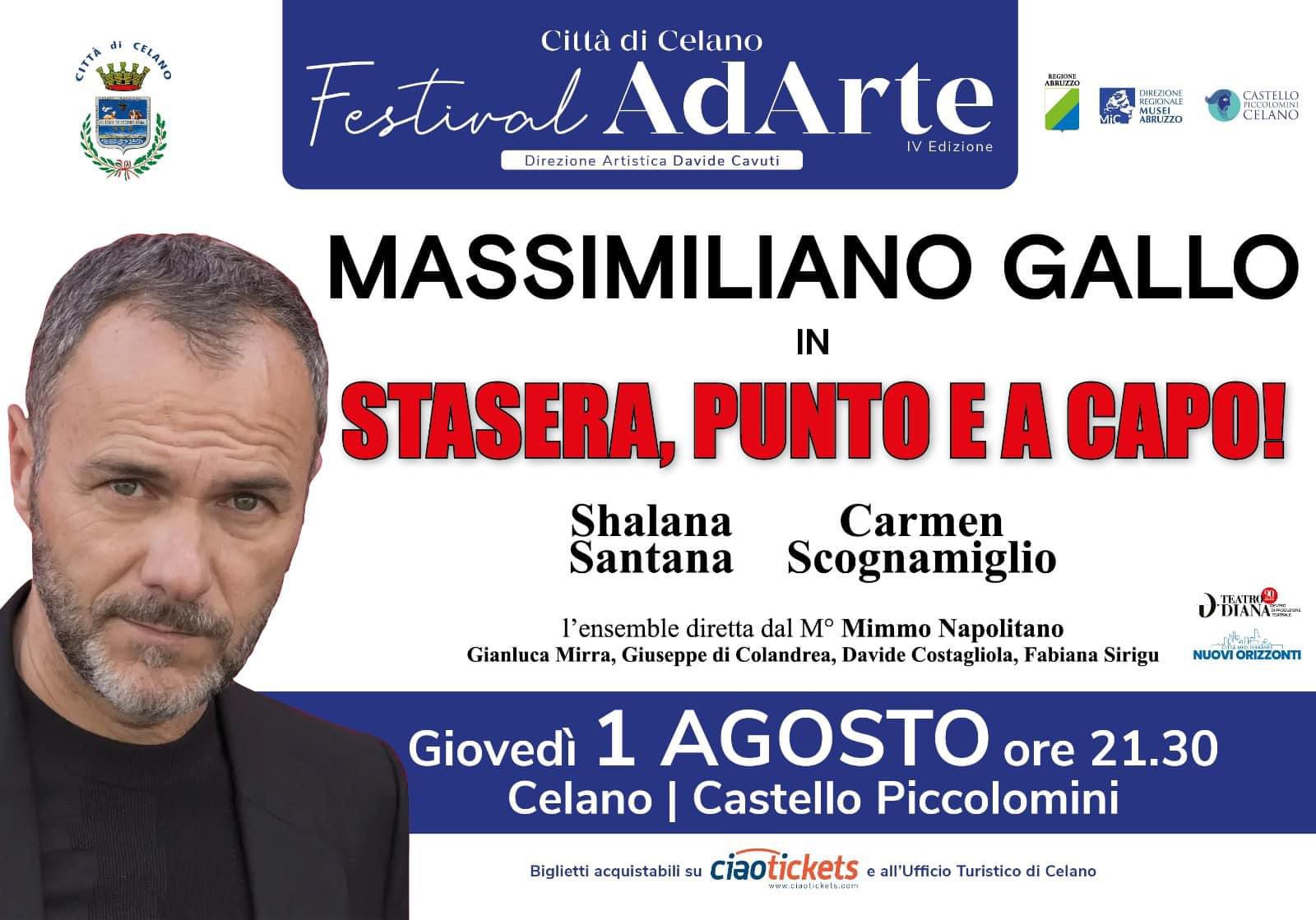 Grande attesa a Celano per lo spettacolo “Stasera punto e a capo” che vedrà in scena l’attore Massimiliano Gallo, già protagonista di tante fiction di