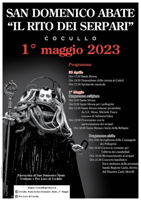 Con l’accoglienza dei pellegrini e la messa in onore di San Domenico torna la ‘Festa dei Serpari’ si svolge a Cocullo il prossimo primo maggio,