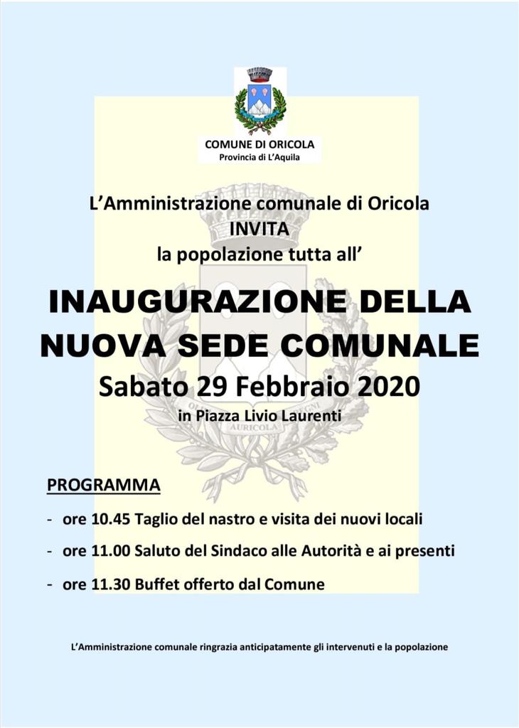 Oricola è pronta a tagliare il nastro della nuova sede comunale. Dopo un anno e mezzo di lavori, sabato 29 febbraio, si potrà inaugurare il moderno palazzo di città.